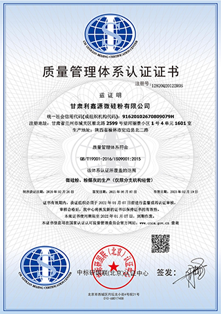 甘肅利鑫源微硅粉有限公司是專業(yè)微硅粉生產(chǎn)加工廠家,從事研發(fā)高品質(zhì)微硅粉,以出口為主的科技型企業(yè)。自2004年以來,公司專做微硅粉十七年。擁有先進(jìn)的生產(chǎn)和化驗設(shè)備,并通 過了ISO9001:2015質(zhì)量管理體系認(rèn)證、ISO145001:2018環(huán)境管理體系認(rèn)證和ISO 45001: 2018職業(yè)健康管理體系認(rèn)證。